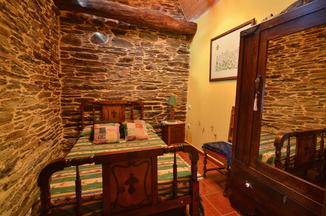 Es una antigua casa de labradores, que hemos restaurado respetando los materiales de la construcción tradicional de la zona: piedra, madera y pizarra.